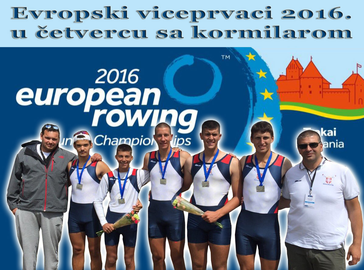 Partizanov reprezentativni četverac sa kormilarom Vuk Mladenović, Veselin Tričković, Vanja Obradović, Damjan Lazić, kormilar Luka Mladenović postao je vicešampion Evrope! Naš čamac je u finalu ove discipline na Evropskom prvenstvu za juniore, koje je u nedelju, 10. jula 2016, završeno u Trakaiju izveslao briljantnu trku i sa rezultatom 6:29.05 stigao do srebrnog odličja. U okršaju za odličja bolja od srpske posade bila je jedino Italija kojoj je pripalo zlato s vremenom 6:25.92. Bronza je otišla u ruke Turske (6:29.42), dok je Nemačkoj (6:30.55), Ukrajini (6:33.14) i Češkoj (6:40.92), pripalo četvrto, peto, odnosno šesto mesto. Naši momci su nešto slabije startovali. Posle prvih 500 metara bili su četvrti, iza Italijana, Nemaca i Ukrajinaca, a sa istim plasmanom su prošli i kroz prvu „hiljadarku“. U tom trenutku su krenuli u nezadrživi pohod ka postolju. U trećoj četvrtini trke stigli su i prestigli čamce Ukrajine i Nemačke, i izbili na drugo mesto na ulasku u poslednjih 500 metara. Već tada je bilo očigledno da ništa ne može da ih sputa na putu ka evropskom odličju. Turska je ozbiljno napala, ali je naš čamac odbio taj napad i sačuvao vicešampionsku titulu.