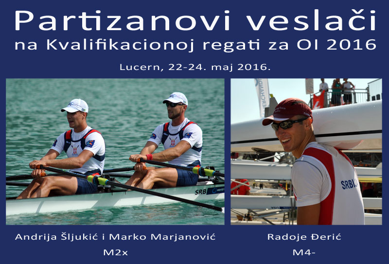 Još dva dana su ostala do početka Kvalifikacione regate za Olimpijske igre u Rio de Žaneiru u Lucernu. Na čuvenoj regatnoj stazi na jezeru Rotze trojica članova Veslačkog kluba Partizan u dva srpska čamca će od nedelje, 22. maja, krenuti u odsudnu borbu za status olimpijskog čamca koji je za sada nosi jedino Partizanov reprezentativni dvojac bez kormilara Miloš Vasić, Nenad Beđik (olimpijsku „vizu“ obezbedio prošle godine bronzanom medaljom na Svetskom prvenstvu za seniore u Ožibeleu). U Partizanovom reprezentativnom dubl skulu veslaće Marko Marjanović i prošlogodišnji osvajač srebra u skifu na Svetskom prvenstvu za seniore do 23 godine u Plovdivu, 21-godišnji Andrija šljukić. Njih dvojica će se za dve poslednje olimpijske karte u ovoj disciplini boriti sa posadama Argentine, Kine, Češke, španije, Estonije, Letonije, Norveške, Poljske, Rusije, Ukrajine i SAD. Završne pripreme naš dubl skul je odradio na Bledu, a pred odlazak za Lucern, trener ovog čamca i prvi trener našeg kluba Aleksandar Ivković kratko je prokomentarisao: