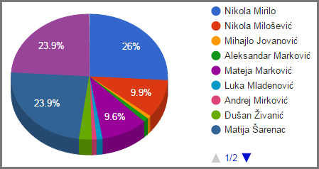 Na drugom mestu je Kosta Petković sa 9119, na trećem Matija šarenac sa 9118, a na četvrtom Nikola Milošević sa 3783. Slede Mateja Marković s 3664, Dušan Živanić s 948, Luka Mladenović s 461, Aleksandar Marković s 417, Andrej Mirković s 381, Mihajlo Jovanović s 302 i Veljko Matić s 38 glasova.