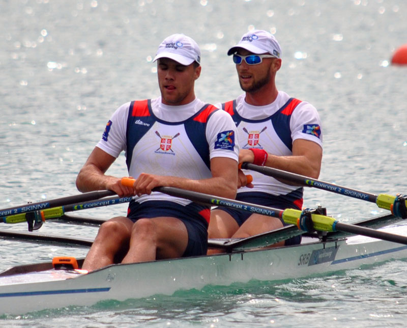 Marjanović i šljukić su odlično startovali. U prvih 500 metara vodili su rovovsku borbu sa čamcem Poljske za čelnu poziciju, uspevši da ga trenutno slome i da kroz prvu četvrtinu trke prođu kao prvoplasirani. Međutim, žestok duel ova dva čamca trajao je i narednih 1.000 metara. Naši reprezentativci uspeli su da izdrže sve napade Poljaka i da ih konačno primoraju da kapituliraju na ulasku u poslednjih 500 metara, posle čega su Grabovski i Čaja ubrzo pali na treće mesto. Marjanović i šljukić su bez greške izveslali finiš i zasluženo stigli do pobede i jedinog mesta koje je vodilo direktno u finale. Iz prve grupe kvalifikacija direktno u finale se plasirala posada Norveške (6:12.15), dok će u repesaž Češka (6:20.81), Ukrajina (6:26.91), španija (6:28.18), Letonija (6:29.14) i Rusija (6:30.96).