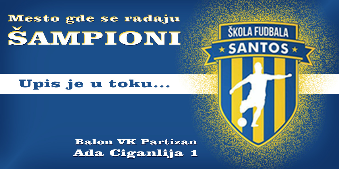 Od 1. oktobra 2016. u Balonu Veslačkog kluba Partizan počinje sa radom škola fubala Santos. U fokusu ovog kluba jeste da deci, kroz druženje i igru i uz posvećen i pedagoški rad, otkriju sve tajne najpopularnije igre na svetu i da im izgrade jak temelj za bavljenje vrhunskim sportom. Upis za dečake i devojčice uzrasta od pet do 12 godina je u toku, a za 20 prvih upisanih polaznika škola fudbala Santos je obezbedila na poklon majicu i šorc za treninge. Prva dva treninga su gratis, a u cenu članarine je uračunata i besplatna karta za ulaz kolima na glavnu rampu Ade Ciganlije. Za drugo dete u klubu članarina je dublo manja. Treninzi počinju od 1. oktobra u sjajnim uslovima Balona Veslačkog kluba Partizan na Adi Ciganliji 1 i to utorkom od 10 do 11 č i od 17 do 18 č, četvrtkom od 10 do 11 č i od 17 do 18 č i subotom od 10 do 11 č.